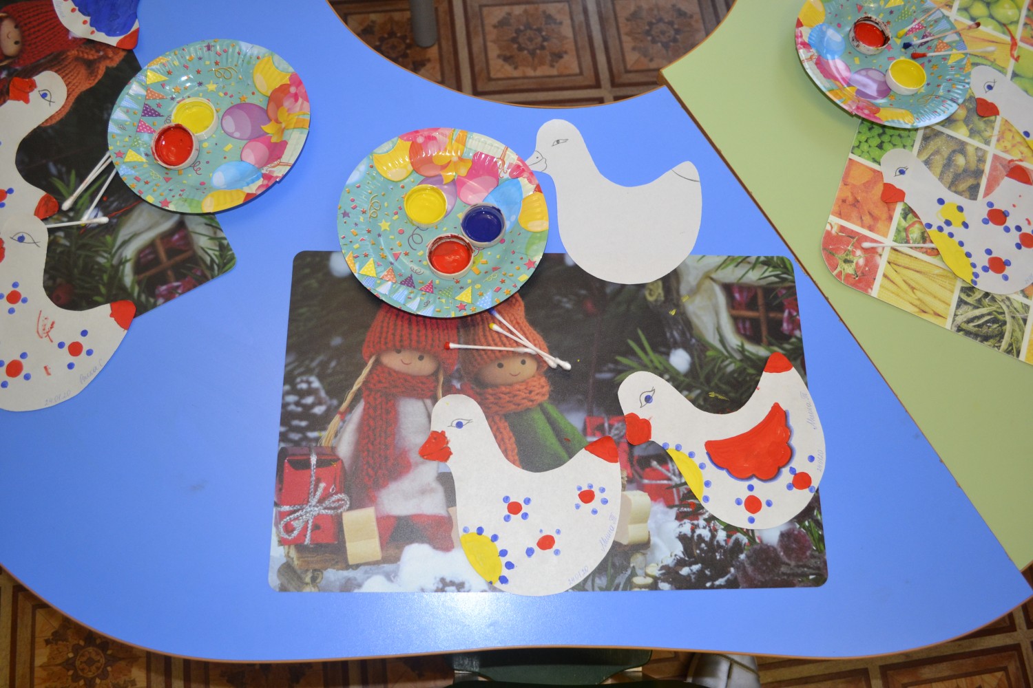 24 января 2020 года для детей 3-4 лет провела организованную образовательную деятельность на тему: «Украсим дымковскую уточку». Познакомила детей с дымковской игрушкой и характерными для нее элементами. Рассматривая иллюстрации предложила детям украсить уточку, после выполнения работы воспитанники получили радость от получившегося результата.