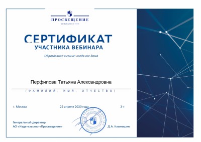 22 апреля участвовала в вебинарах по результатам которых получила сертификаты участника.