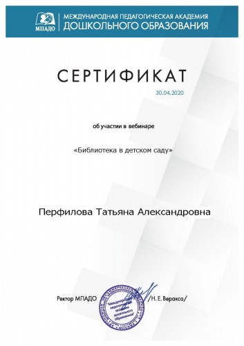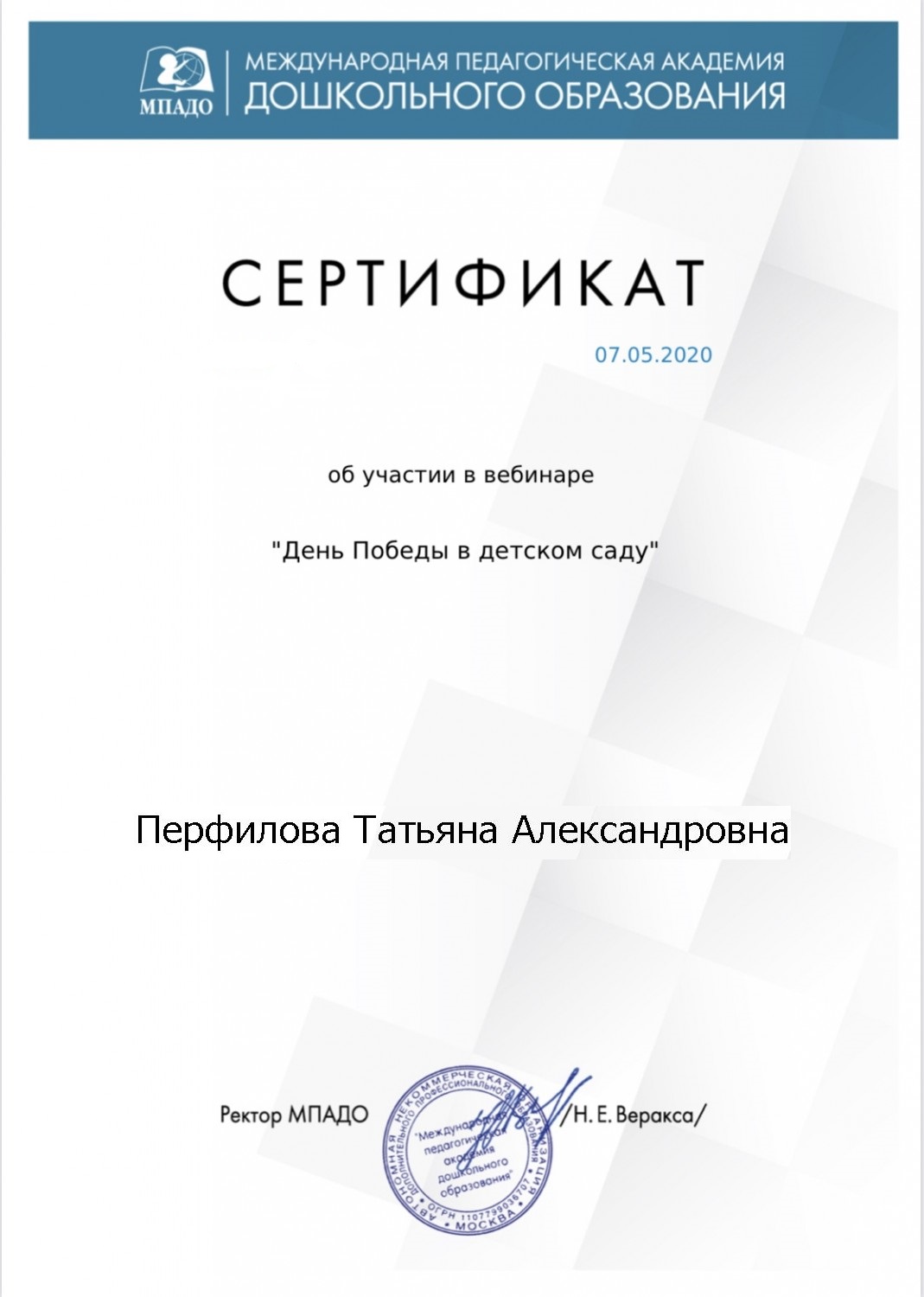 Персональный сайт старшего воспитателя Перфиловой Татьяны Александровны