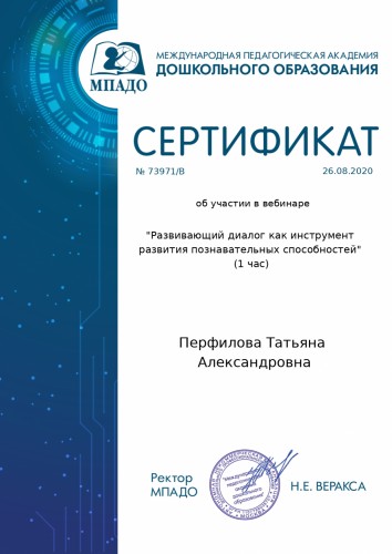 Персональный сайт старшего воспитателя Перфиловой Татьяны Александровны