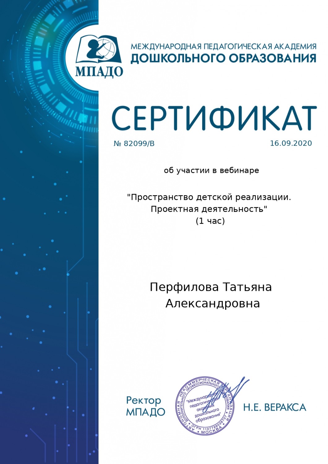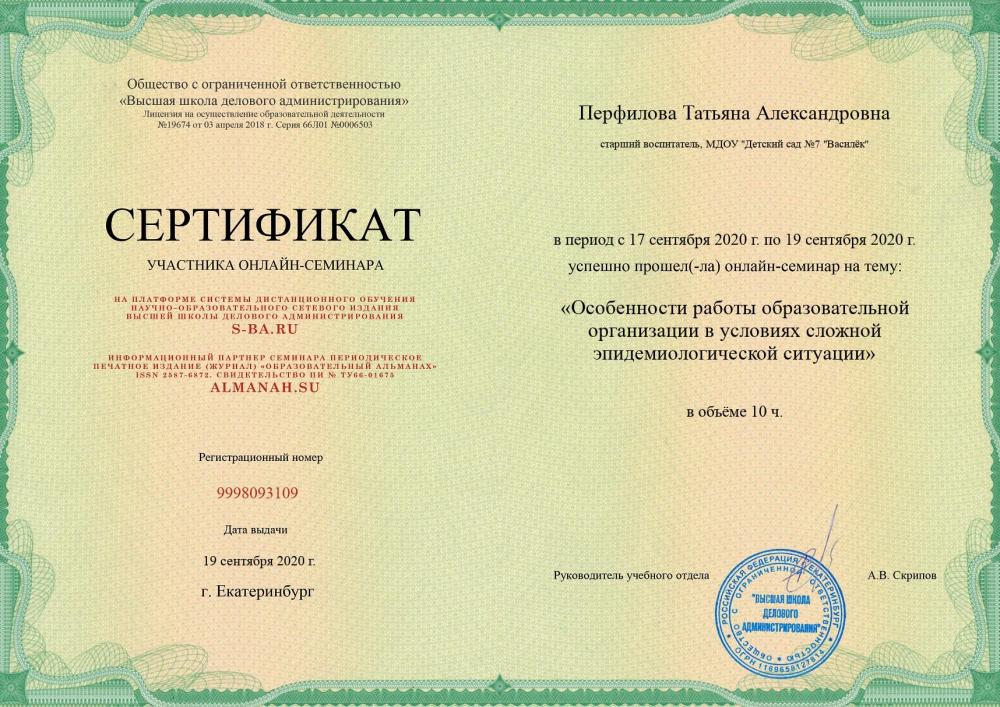 Персональный сайт старшего воспитателя Перфиловой Татьяны Александровны