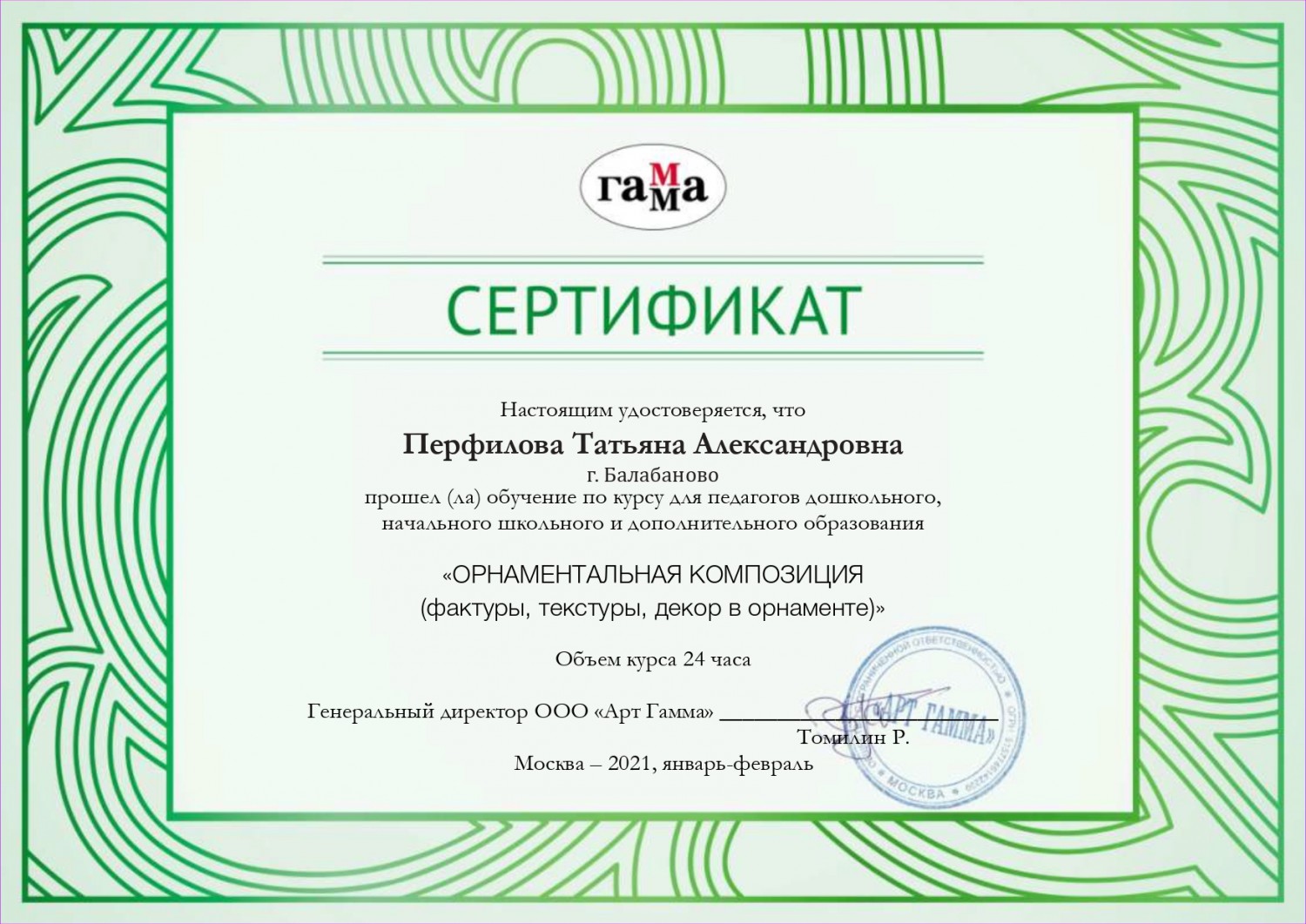 Персональный сайт старшего воспитателя Перфиловой Татьяны Александровны