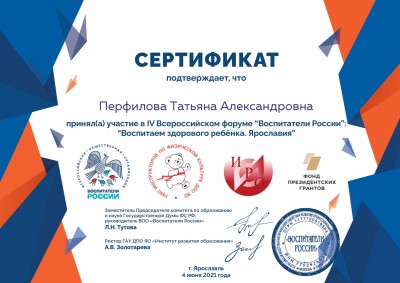 Персональный сайт старшего воспитателя Перфиловой Татьяны Александровны