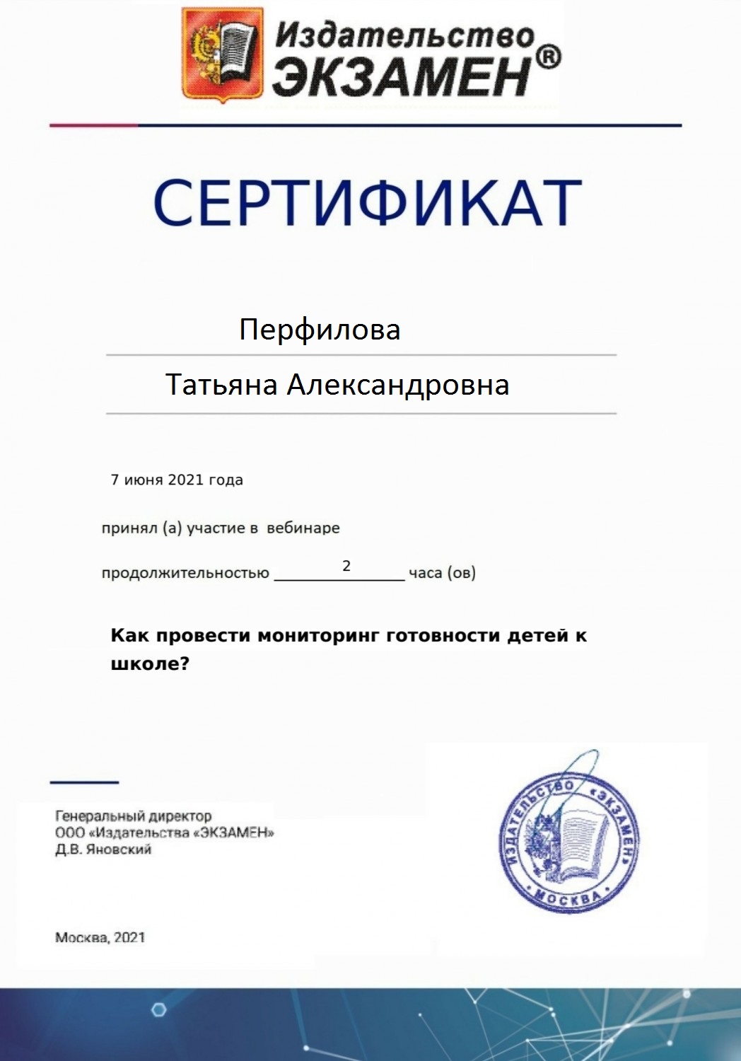 Персональный сайт старшего воспитателя Перфиловой Татьяны Александровны