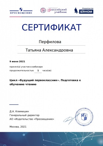Персональный сайт старшего воспитателя Перфиловой Татьяны Александровны