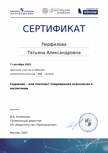 Персональный сайт старшего воспитателя Перфиловой Татьяны Александровны
