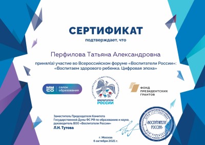 Персональный сайт старшего воспитателя Перфиловой Татьяны Александровны