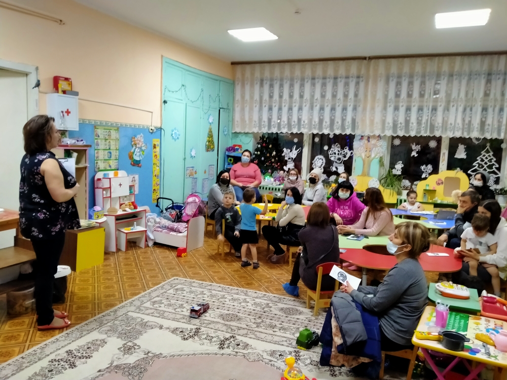 10 декабря 2021 года во второй младшей группе "Дельфинчики" вместе с Тамарой Александровной провели родительское собрание на тему: «Скоро-скоро Новый год». На родительском собрании обсудили вопросы: подготовка к новогоднему утреннику, как подготовить ребёнка к новогоднему утреннику, изготовление атрибутов и костюмов. Поделки и совместные работы детей и родителей для праздничной выставки «Новогодние часы». Как провести время на новогодних каникулах. Правила безопасности в период новогодних каникул, безопасность в сети "Интернет". Мастер-класс "Новогодняя снежинка". Выступление родительского комитета.