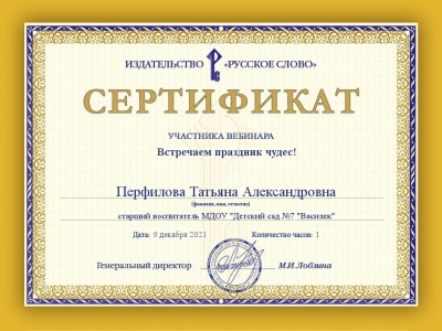 Персональный сайт старшего воспитателя Перфиловой Татьяны Александровны