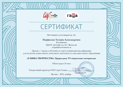 Персональный сайт старшего воспитателя Перфиловой Татьяны Александровны