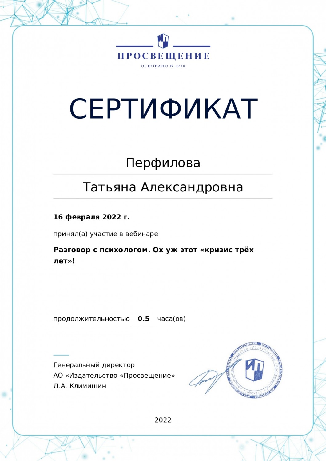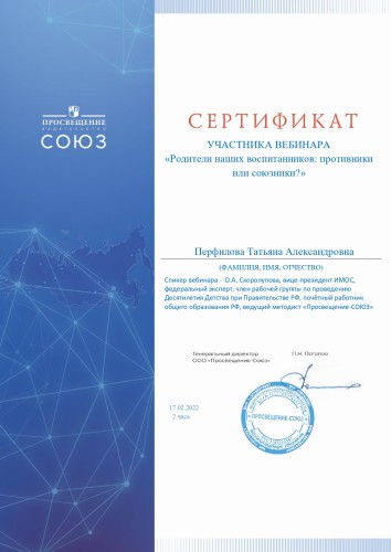Персональный сайт старшего воспитателя Перфиловой Татьяны Александровны