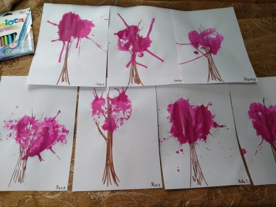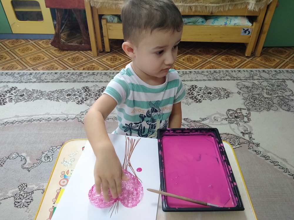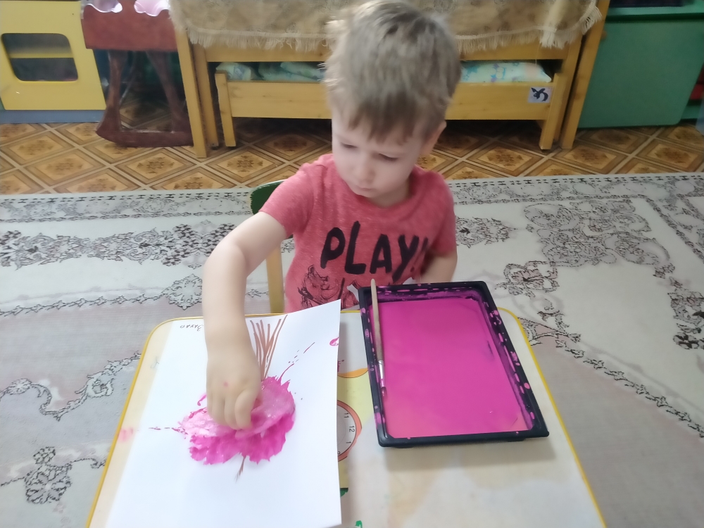 14 февраля 2022 года в совместной деятельности воспитателя и детей нарисовали дерево используя отпечаток целлофановой упаковки.