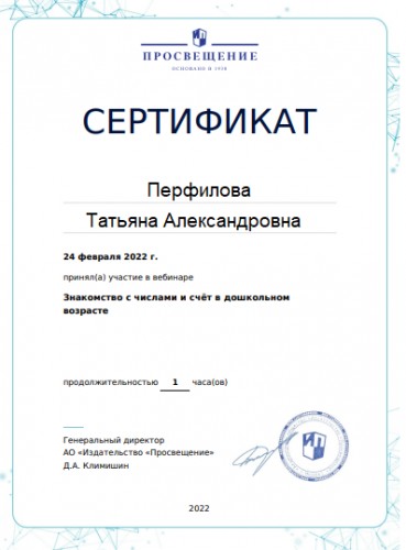 Персональный сайт старшего воспитателя Перфиловой Татьяны Александровны