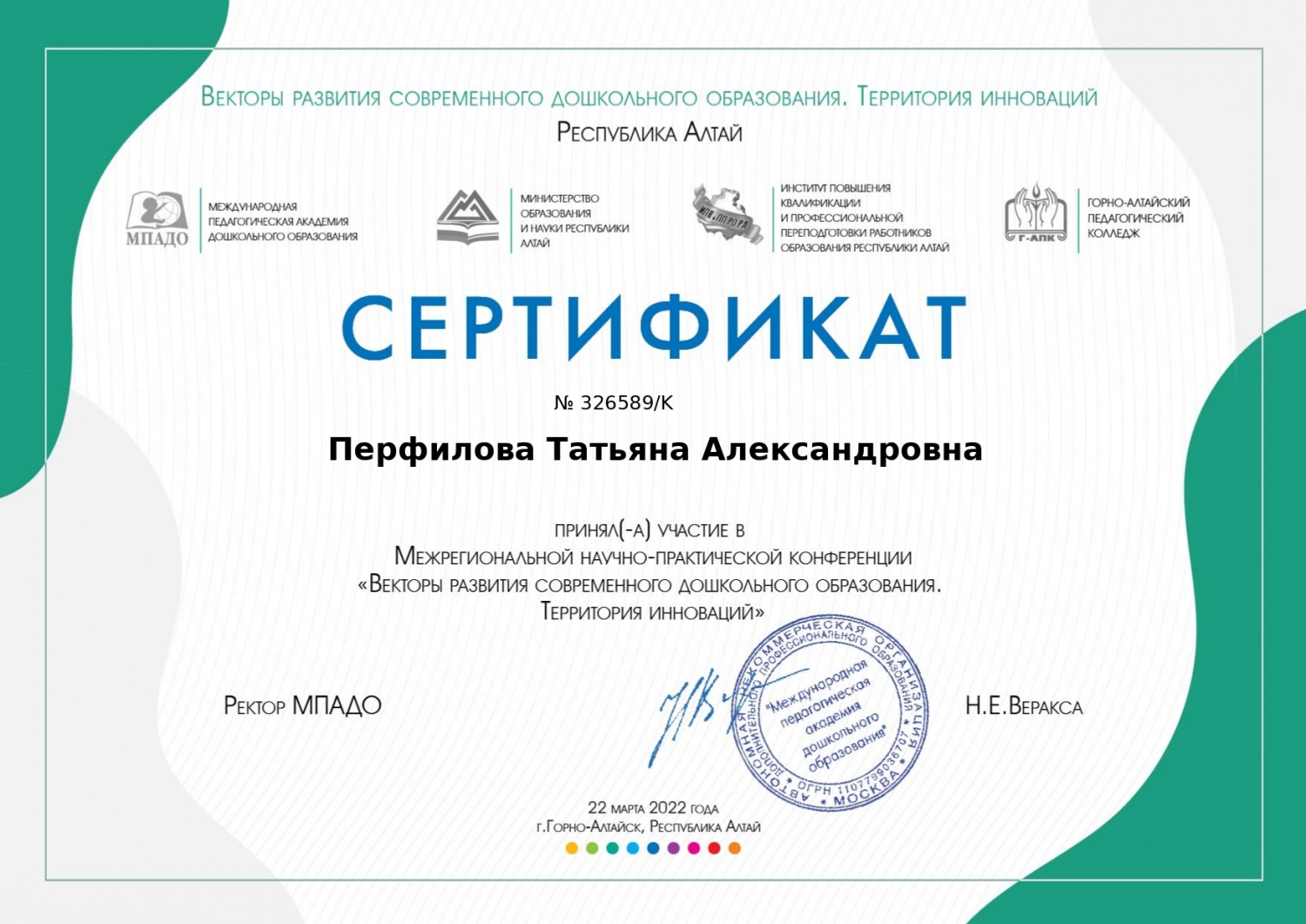 Персональный сайт старшего воспитателя Перфиловой Татьяны Александровны