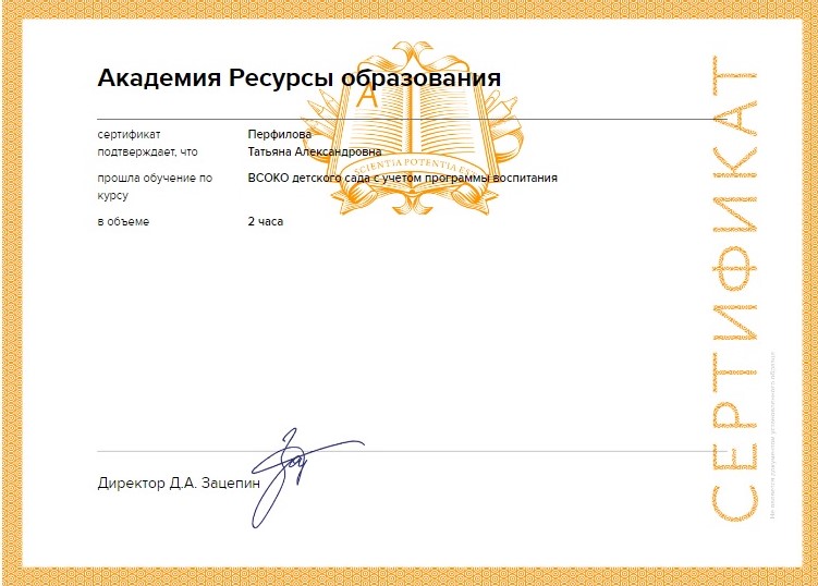 Персональный сайт старшего воспитателя Перфиловой Татьяны Александровны