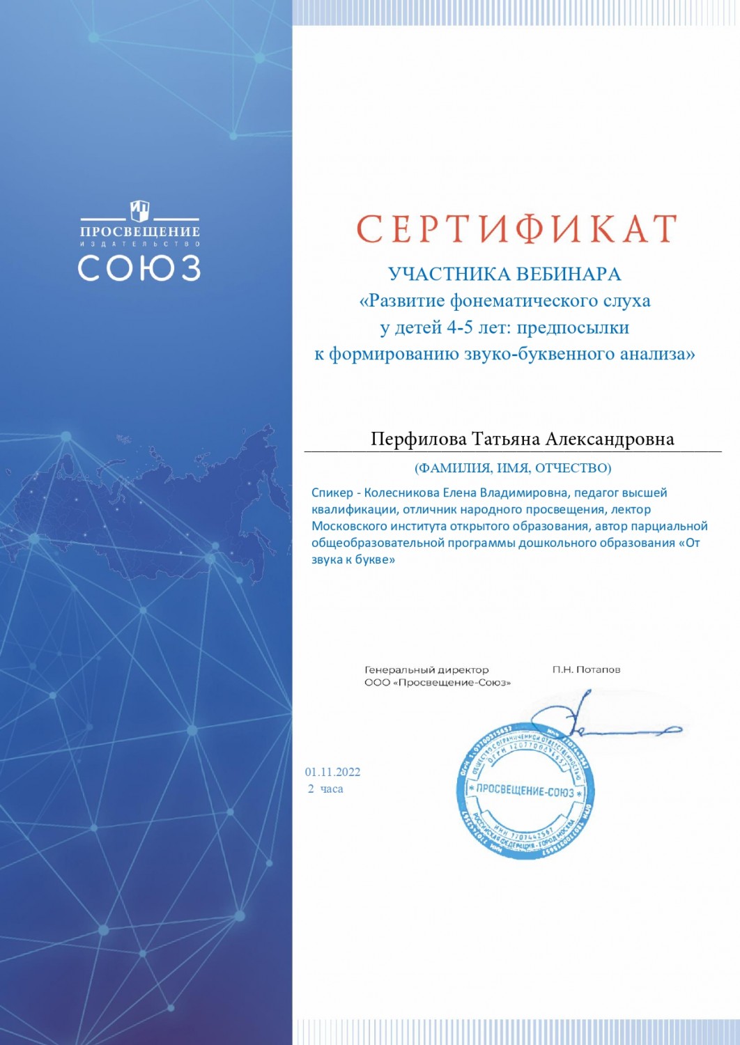 Персональный сайт старшего воспитателя Перфиловой Татьяны Александровны