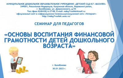 30 января 2023 года подготовила и провела семинар для педагогов ДОО на тему: "Основы воспитания финансовой грамотности детей дошкольного возраста".