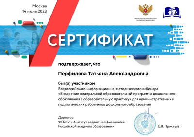 Персональный сайт старшего воспитателя Перфиловой Татьяны Александровны