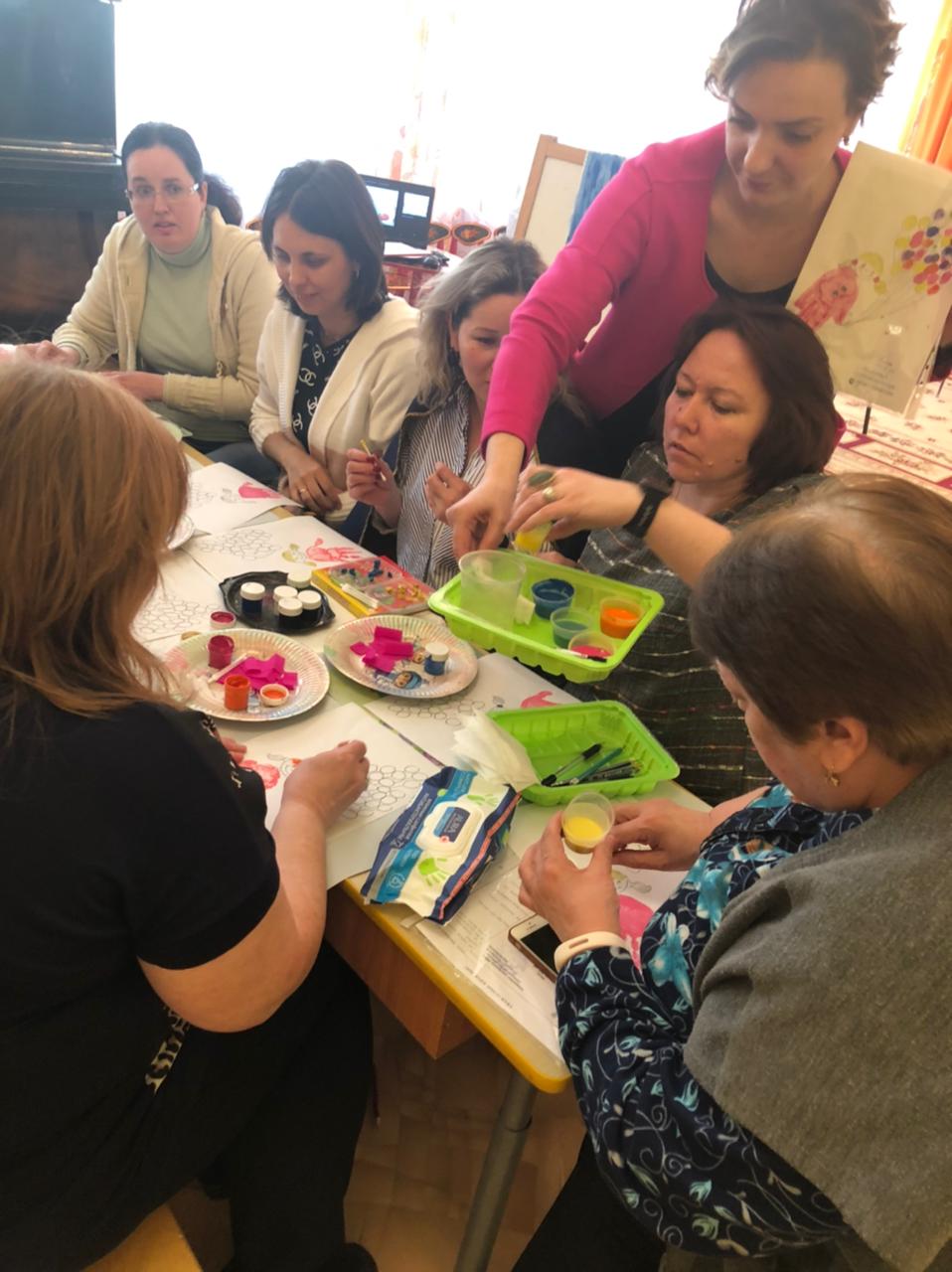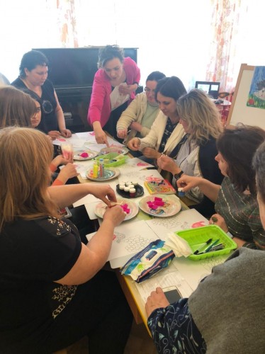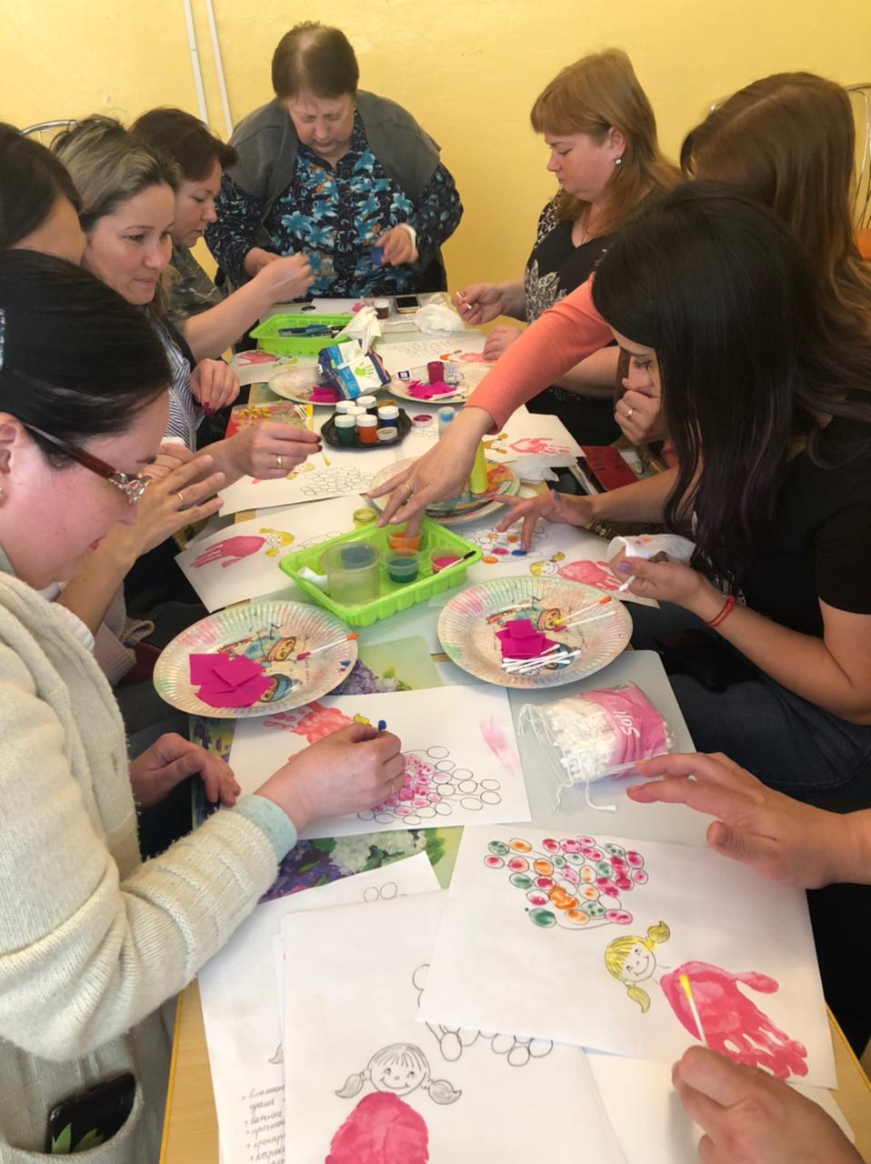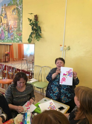 13 мая 2021 года были итоги реализации дополнительного образования детей в МДОУ "Детский сад №7 "Василек", на котором подготовила для коллег информацию о реализации программы "Цветные ладошки" с использованием мультимедийной презентации. Для коллег провела мастер-класс "Маленькая мечтательница", в ходе выполнения которого педагоги на своем опыте могли познакомиться с программой "Цветные ладошки".