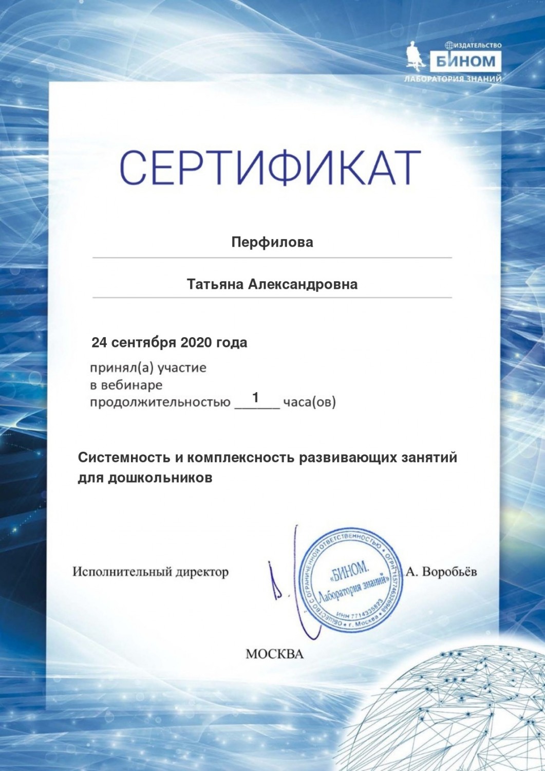 Персональный сайт старшего воспитателя Перфиловой Татьяны Александровны