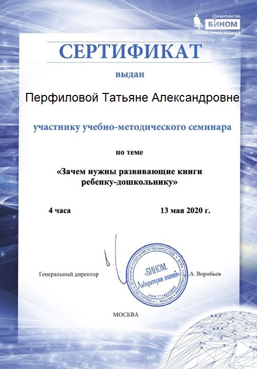 Персональный сайт старшего воспитателя Перфиловой Татьяны Александровны